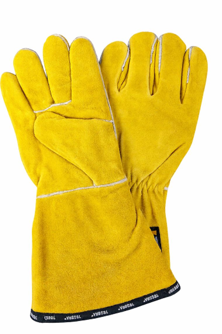 Schweisshandschuh TEGERA19 Gefütterter Hitzeschutzhandschuh Rindspaltleder Gummizug über Handgelenk, 10cm Stulpe (159547)